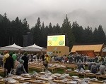 夜半からの雨でしたが式典の間だけはいっさい降らず、この日のために準備されてこられた方々には何よりでした。関係者の祈りと皇太子殿下御臨席のパワーがもたらした奇跡?なのかもしれません。山々に「もや」がかかった情景はかえって神秘的で、育樹祭にふさわしいものになりました。