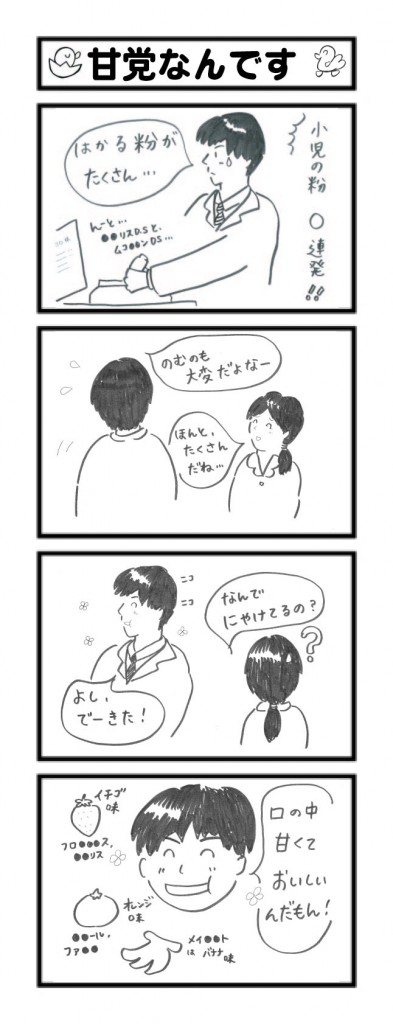 『粉ぐすりを量っている時って、空気中に粉が舞って口の中が甘~くなりませんか!?』