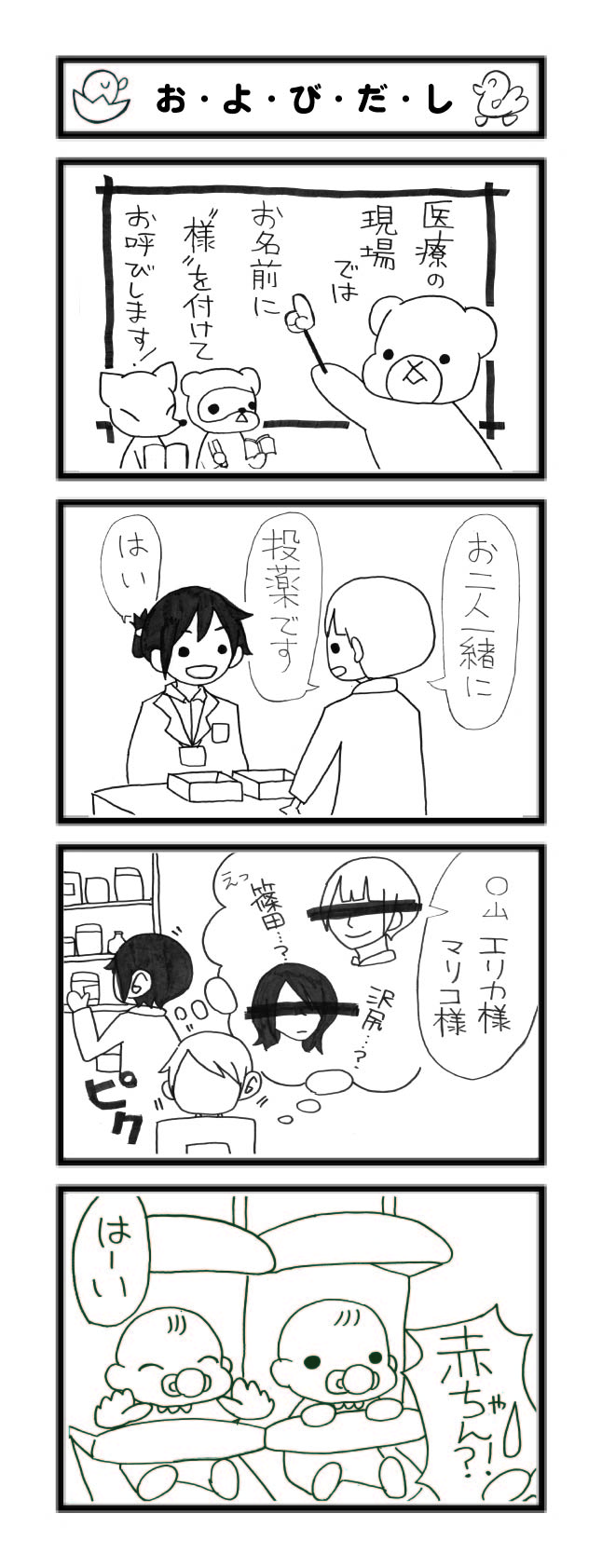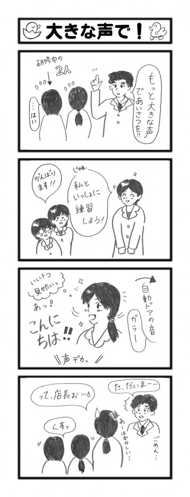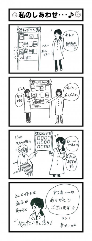 ハーズ4コマ劇場では思わずクスッと笑ってしまう、ハーズ・スタッフの日常をとりあげています。あくまで「マンガ」として、ご理解いただきたきますようお願い申し上げます。(総務)