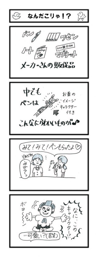 問屋さんから頂く“販促品”には、お薬の名前・イメージキャラクターが描かれています。